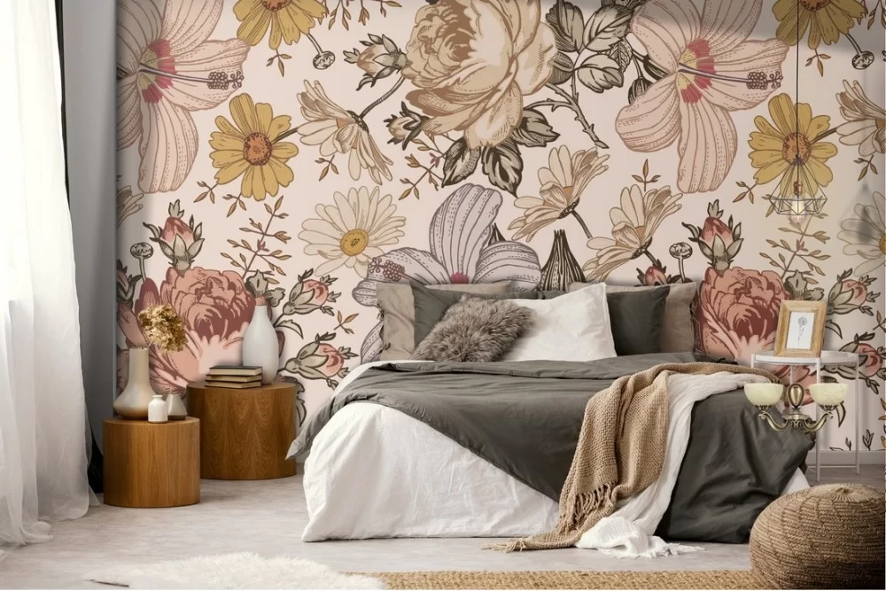 Carta da Parati Design e Stili Flora e Fauna Fiori Natura Vintage