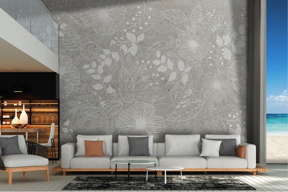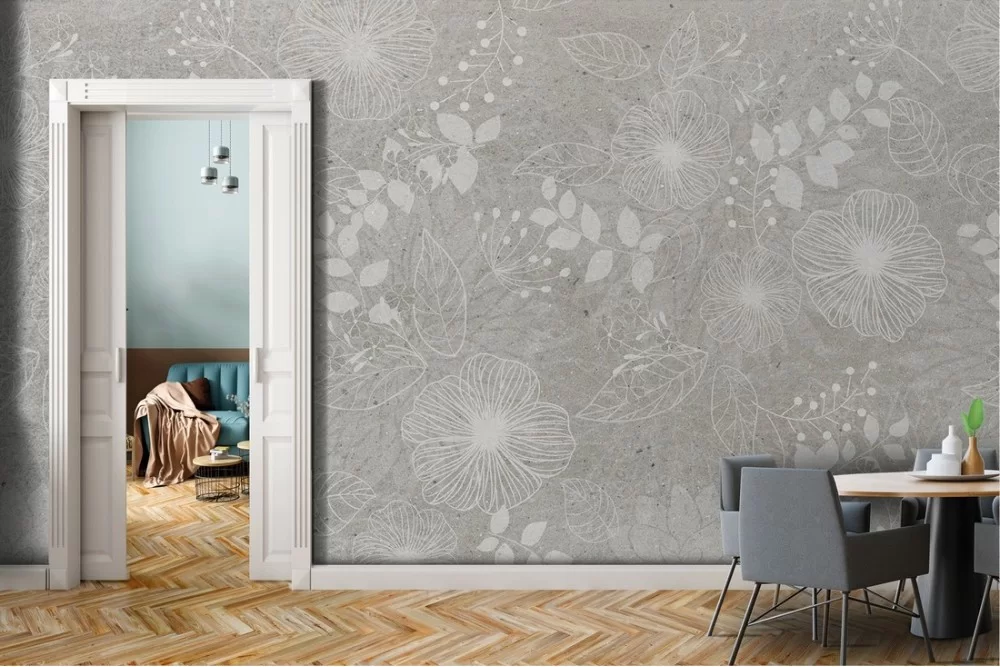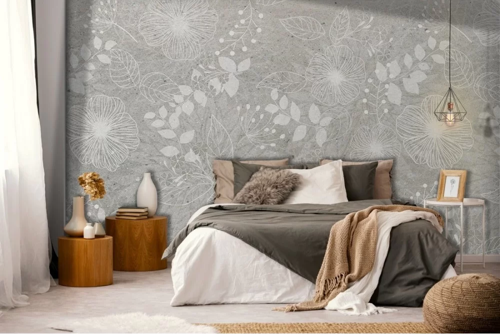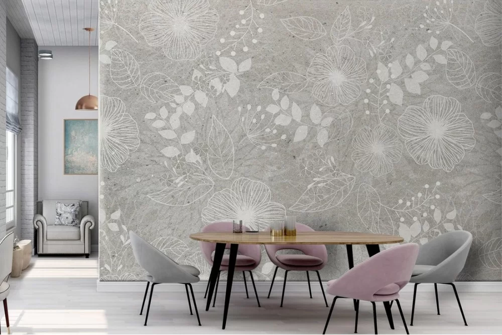 Carta da Parati fiori e foglie natura grigio vintage-0126