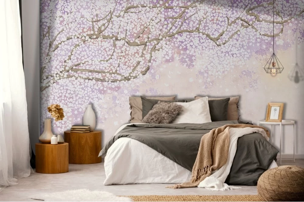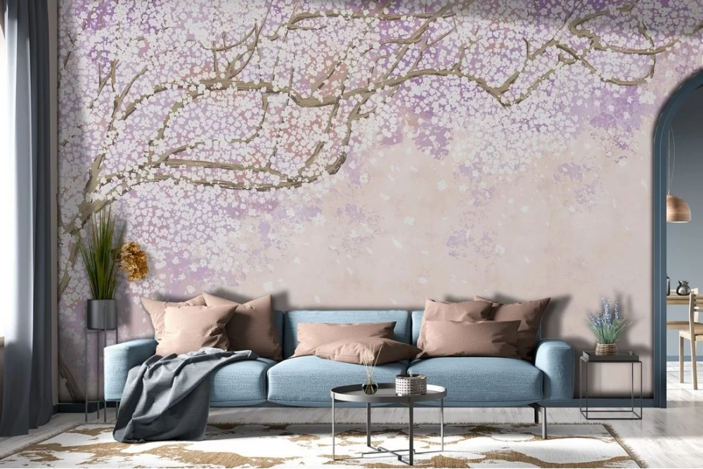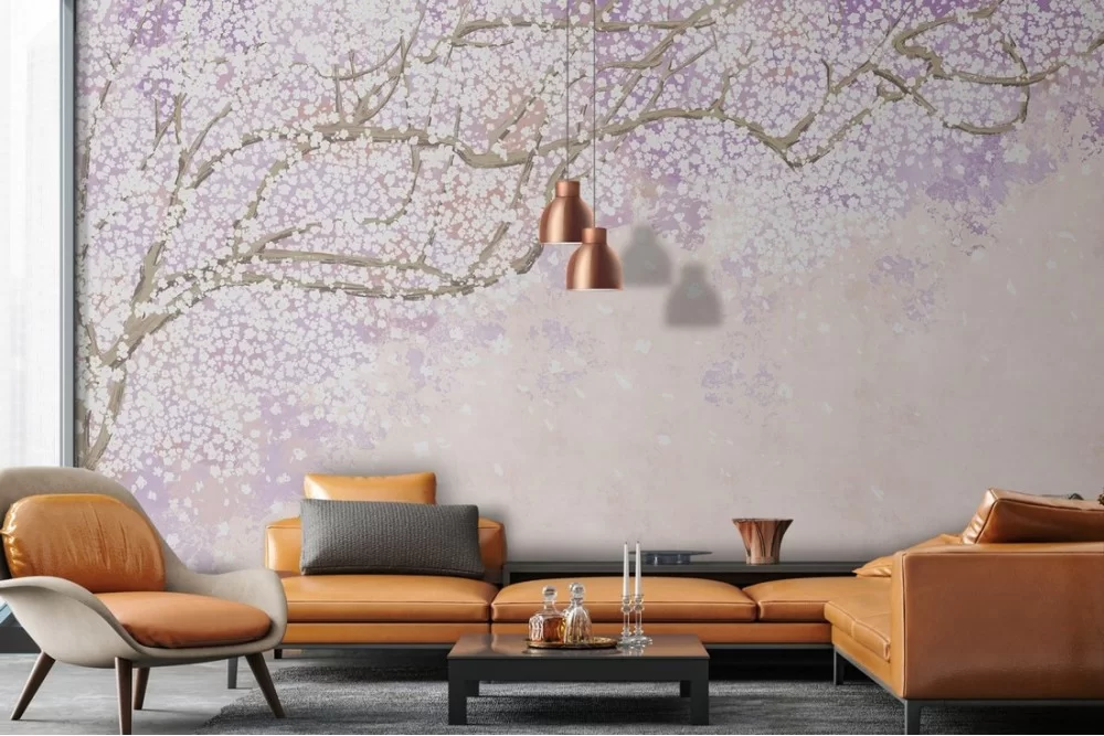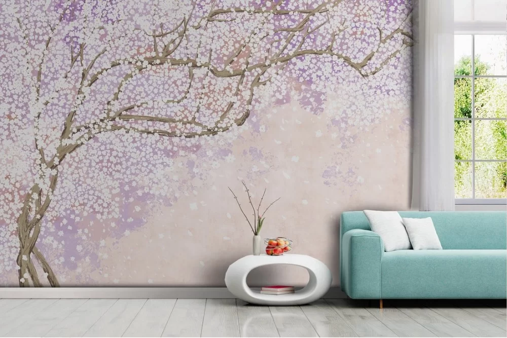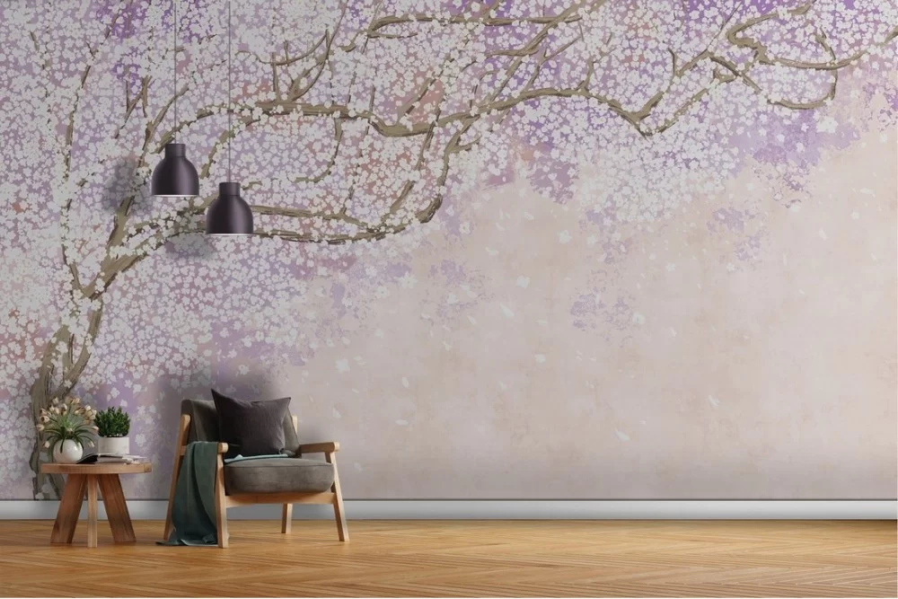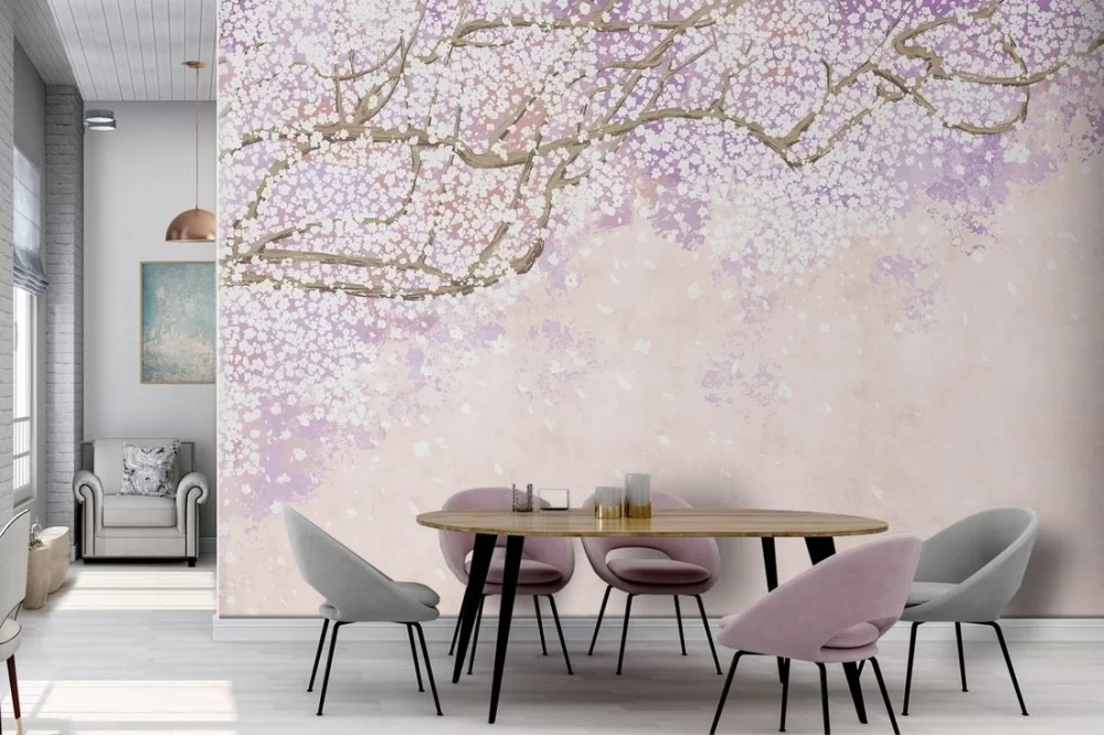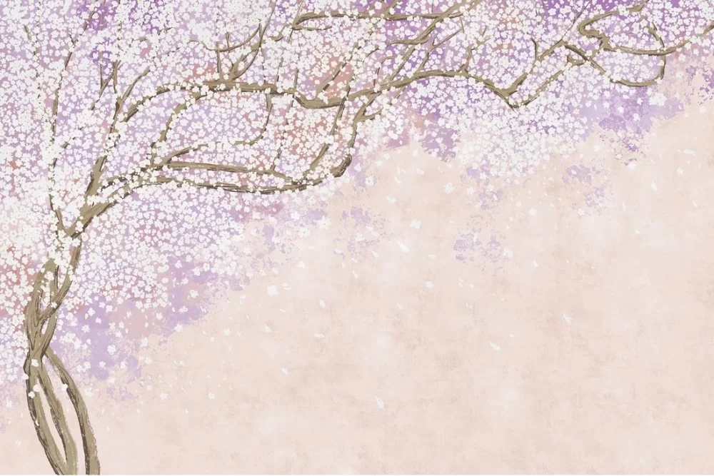 Carta da Parati albero in fiore natura illustrazione rosa-0273
