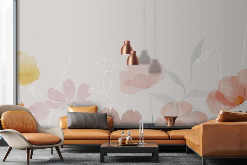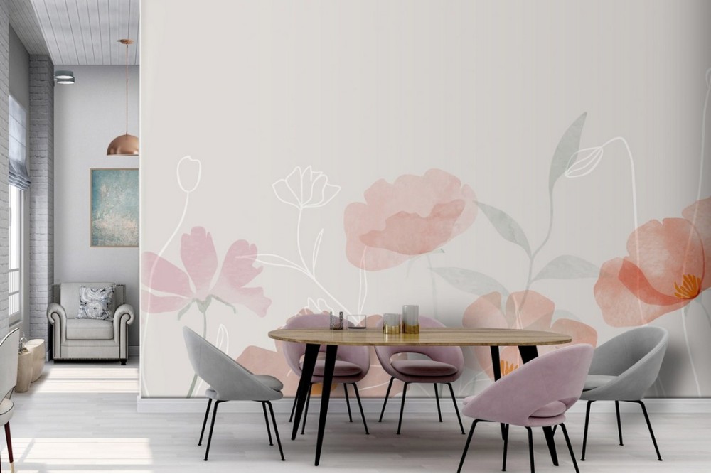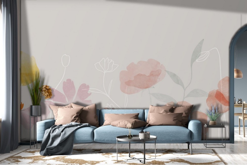Carta da Parati Dipinti e Acquerelli Fiori Natura