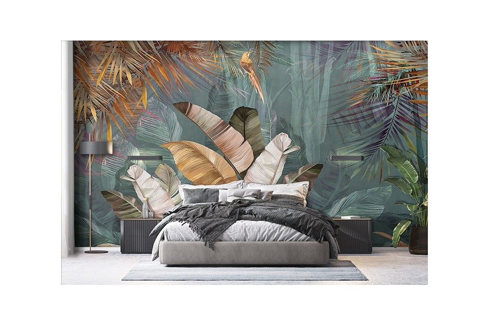 Carta da Parati Foresta con foglie tropicali