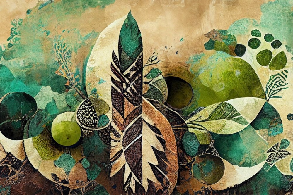 Carta da Parati vintage piuma verde e marrone -a411