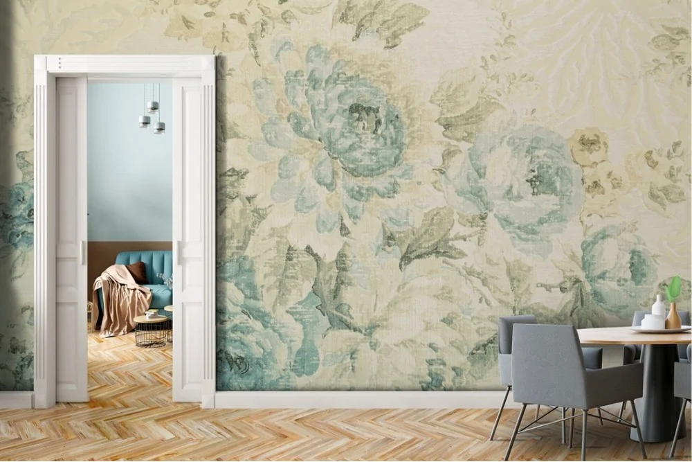 Carta da Parati fiori vintage bianchi e azzurri natura