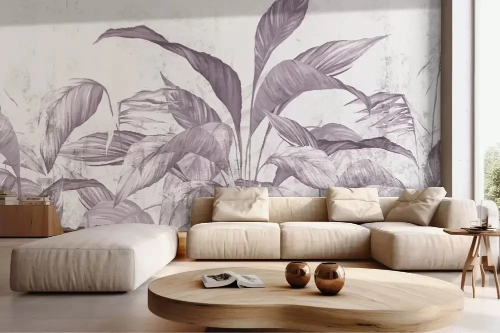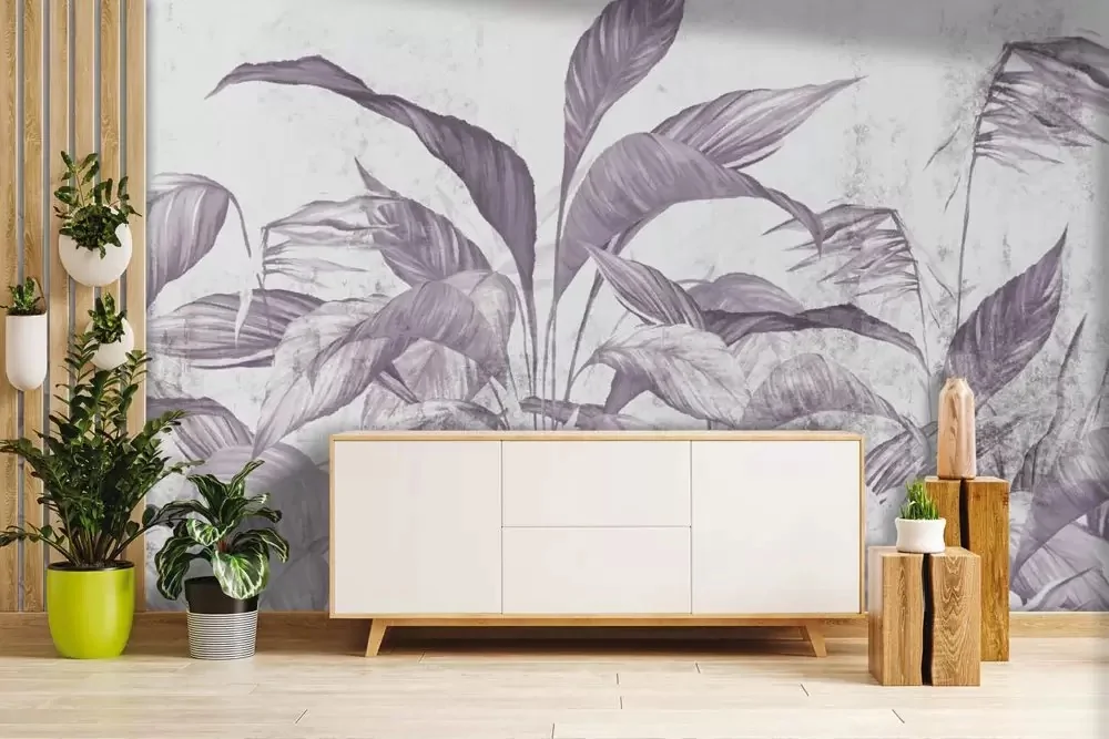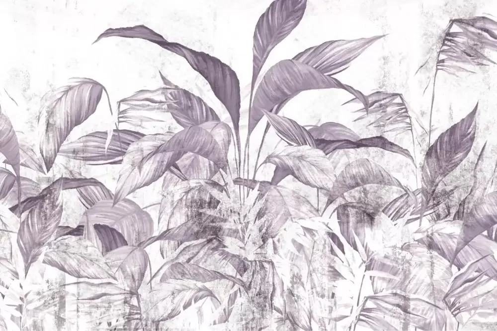 Carta da parati foglie viola vintage raffinata, sofisticata e chic. Ideale per zone giorno luminose. Realizzata con materiali sostenibili.