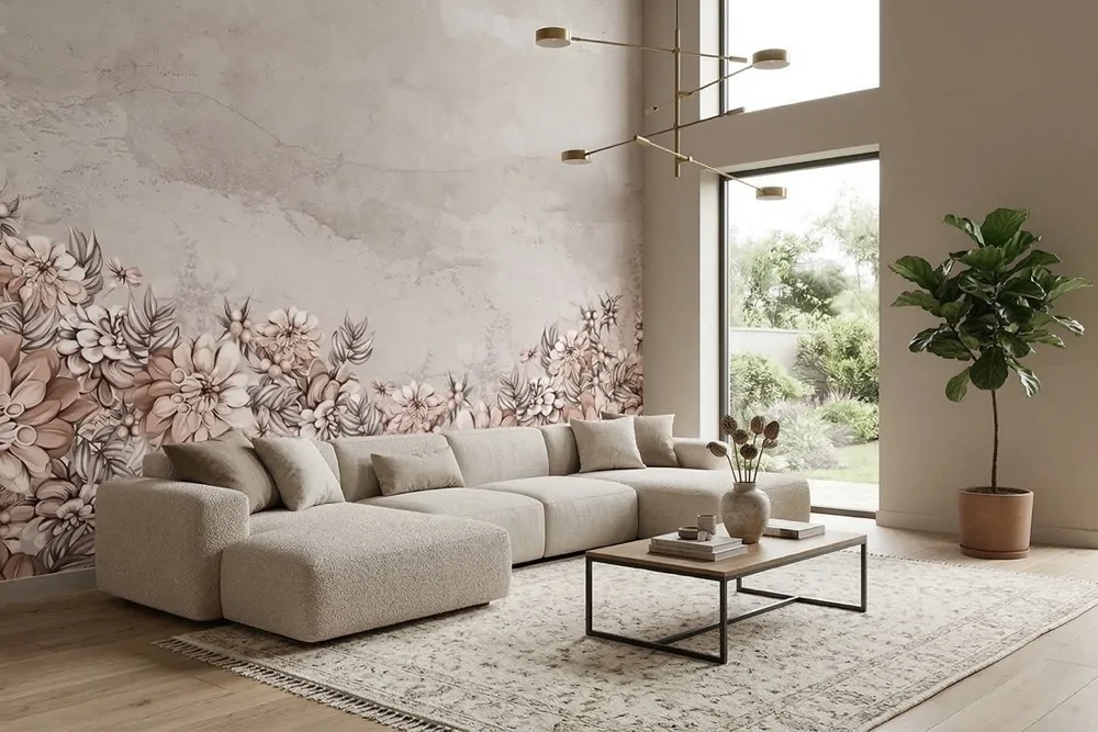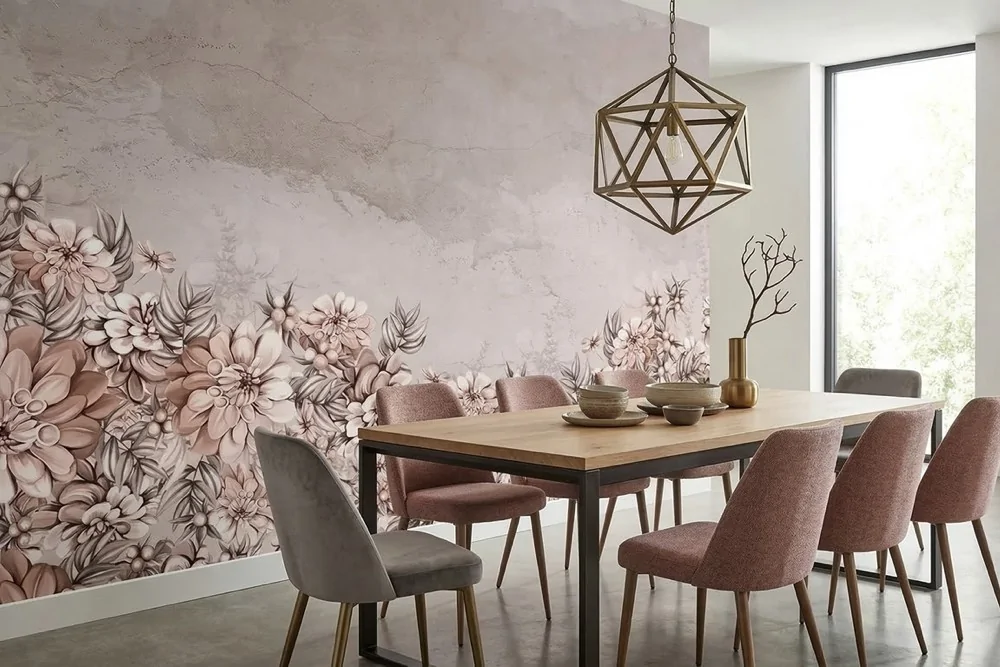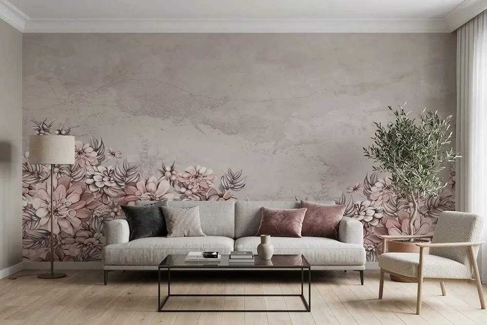 Carta da parati floreale effetto cemento
