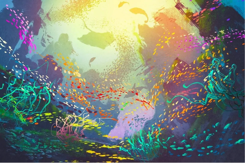 Carta da Parati paesaggio subacqueo con pesci