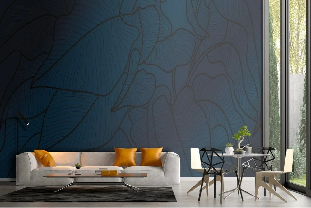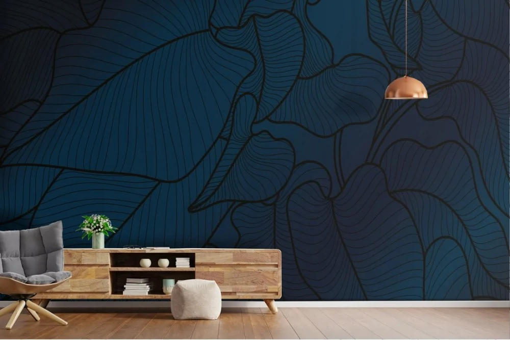 Carta da Parati foglie stilizzate minimal blu