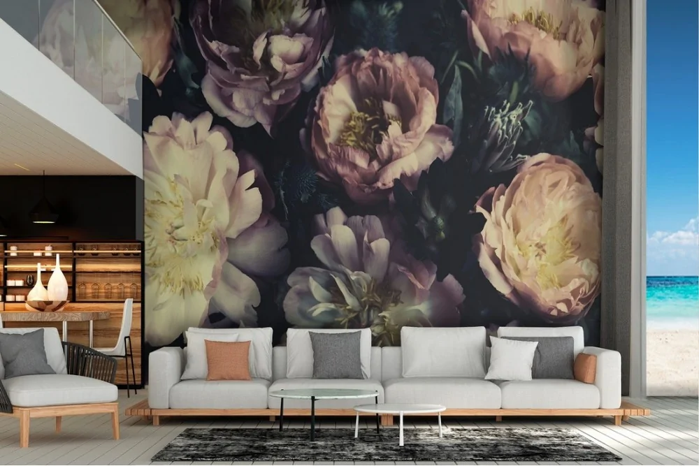 Carta da Parati composizione fiori rose natura vintage