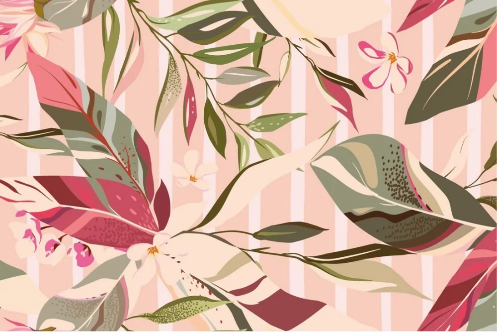 Carta da Parati foglie astratte e righe rosa
