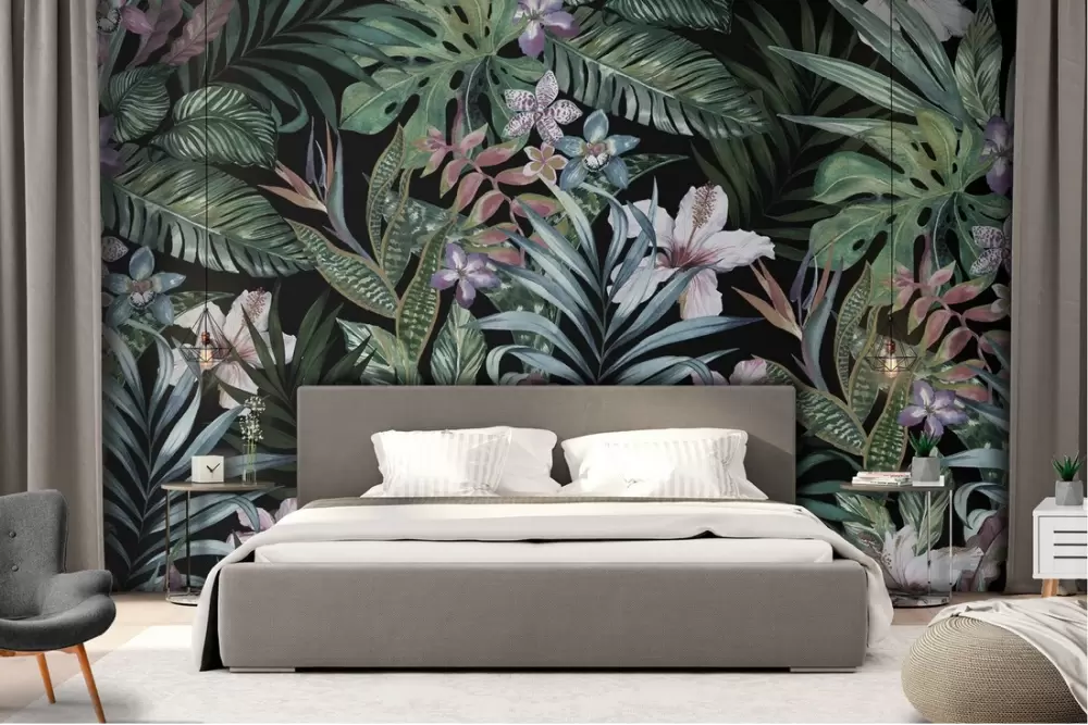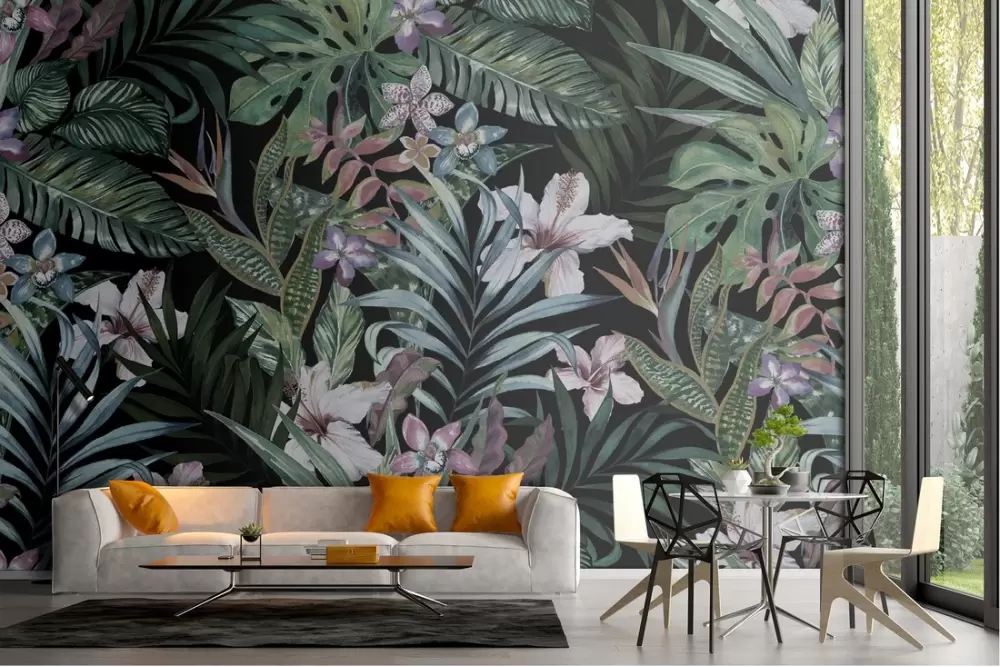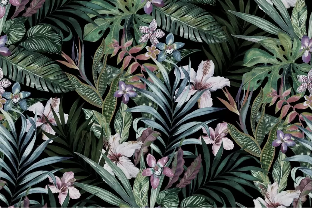 Carta da Parati illustrazione foglie e fiori natura
