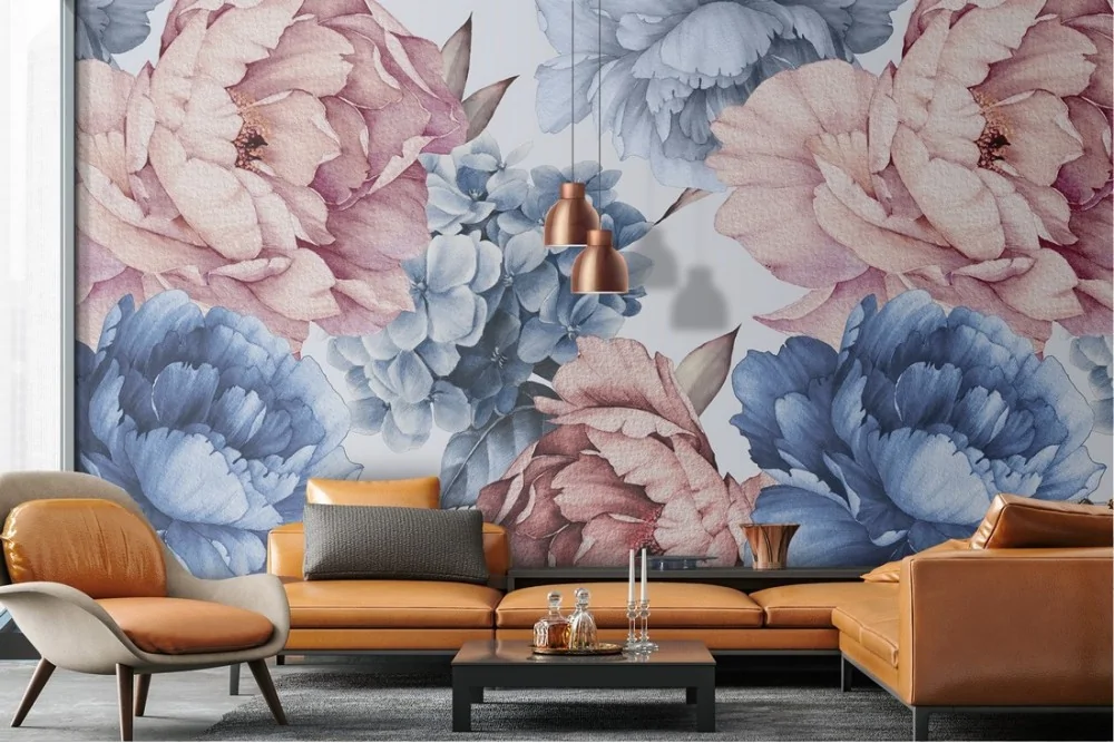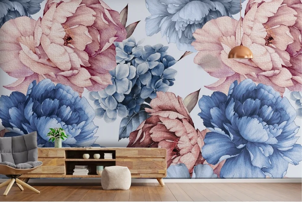 Carta da Parati fiori rosa e azzurro illustrazione natura