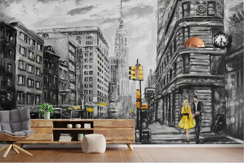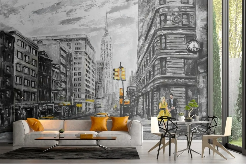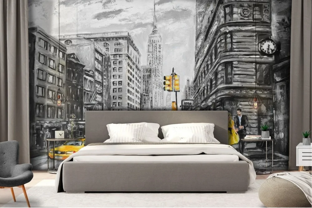Carta da Parati dipinto città New York taxi