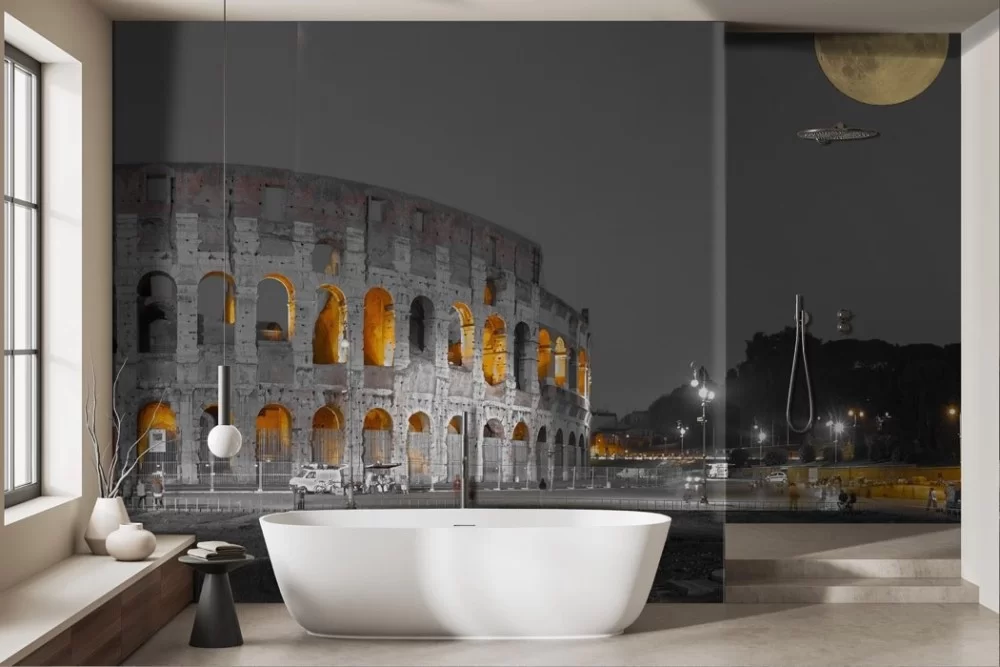 La carta da parati Roma notturna Colosseo luna, viene prodotta esclusivamente in Italia per garantire la massima qualità e artigianalità. Tutte le nostre carte da parati possono essere personalizzate GRATUITAMENTE nello stile e nei colori per adattarsi meglio ai tuoi ambienti ed alle tue esigente. I nostri designer creerano anche una simulazione della nuova carta nei tuoi ambienti per vedere in anticipo l'effetto grafico ottenuto. Successivamente la carta viene stampata su misura in altissima risoluzione. Tutte le nostre carte da parati non contengono solventi o sostanze chimiche pericolose. Disponiamo di una vasta gamma di finiture tra cui LISCIA CLASSICA, TELA CANVAS, ADESIVA o FIBRA DI VETRO (scopri le caratteristiche nella sezione tipologia carte). La carta da parati moderna è perfetta per dare un tocco di stile ai tuoi ambienti, mentre la carta da parati vintage è ideale per chi ama lo stile anni 70. Se stai cercando un effetto tridimensionale invece, ti consigliamo la carta da parati 3D. Il nostro prodotto è adatto per ogni stanza della casa, dalla carta da parati per camera da letto al salotto o cameretta bambini. Proponiamo carte da parati raffinate ed eleganti, se invece preferisci uno stile più naturale invece puoi scegliere tra le nostre carte da parati con fiori, alberi e bosco. Per i bagni e gli ambienti umidi, consigliamo la carta da parati in fibra di vetro, mentre per rivestire mobili o piastrelle, puoi utilizzare la nostra carta da parati adesiva. Siamo orgogliosi di essere una delle migliori marche di carta da parati sul mercato e di garantire un prodotto di alta qualità e certificato. (# Carta da parati camera da letto, Carte da pareti per salotto, raffinata, moderna, di design, migliore carta da parati, carta da parati vintage, carta da parati anni 70 )