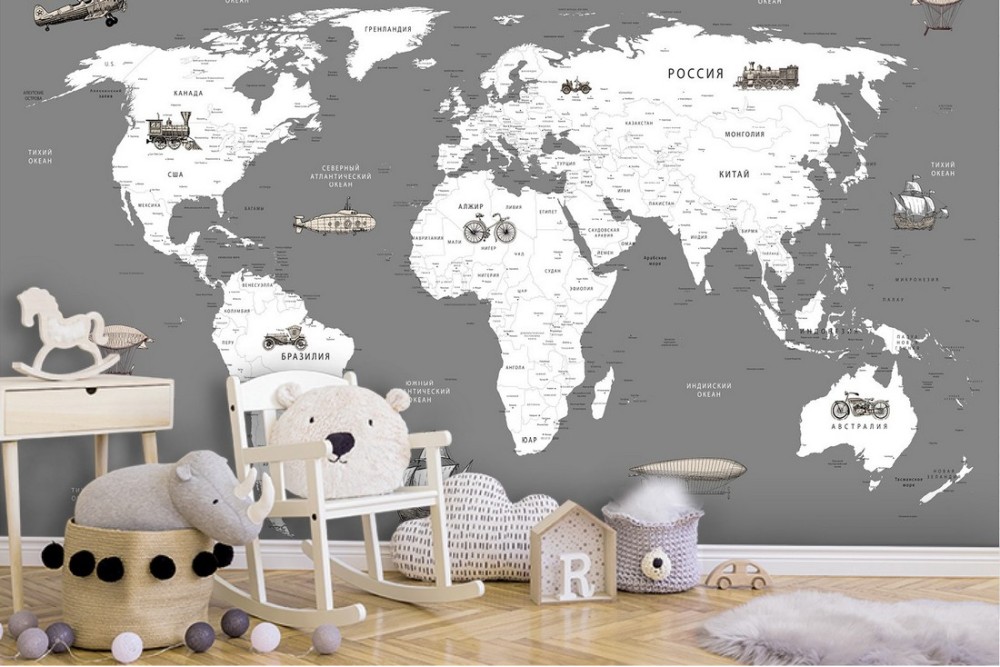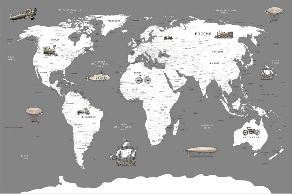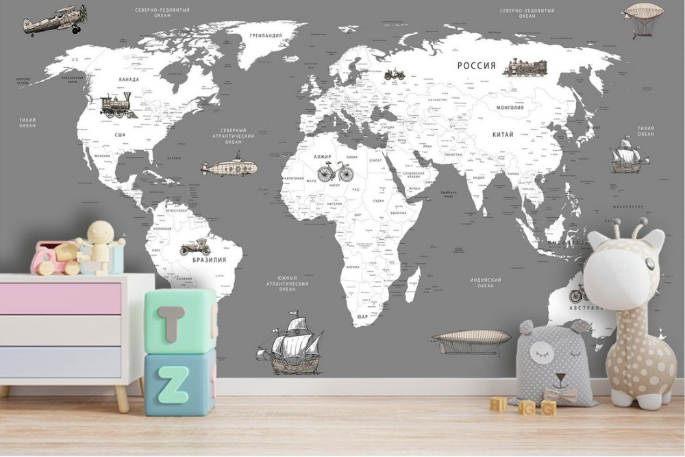 Carta da Parati mappamondo con mezzi di trasporto