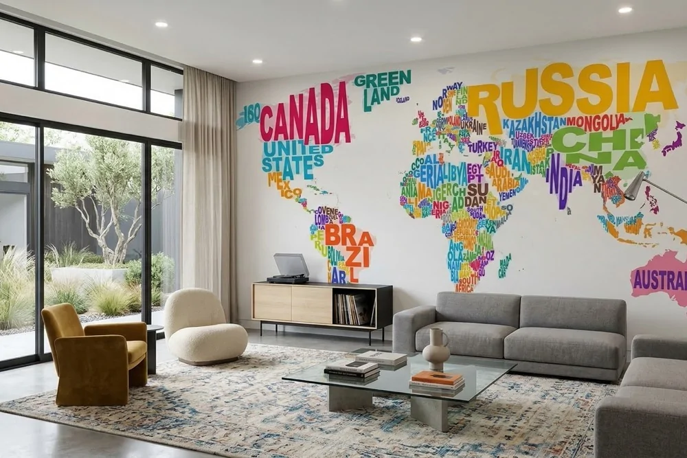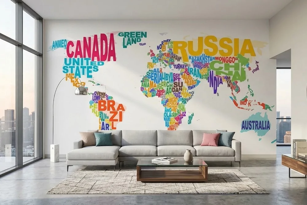 La carta da parati mappamondo colorato nomi nazioni è perfetta per chi ama viaggiare e desidera portare il mondo dentro casa. Il disegno dettagliato dei continenti con i nomi delle nazioni rende la parete un elemento educativo e decorativo allo stesso tempo. Questa carta da parati mappamondo colorato si adatta perfettamente a studi, camerette o uffici creativi, dove stimola la curiosità e il desiderio di esplorare. I colori vivaci e l’equilibrio grafico donano alla stanza un’atmosfera dinamica e moderna. Ogni continente è definito con precisione, garantendo un risultato realistico e gradevole alla vista. La carta da parati mappamondo colorato nomi nazioni unisce stile e significato, diventando un punto focale originale e culturale per ogni ambiente. |