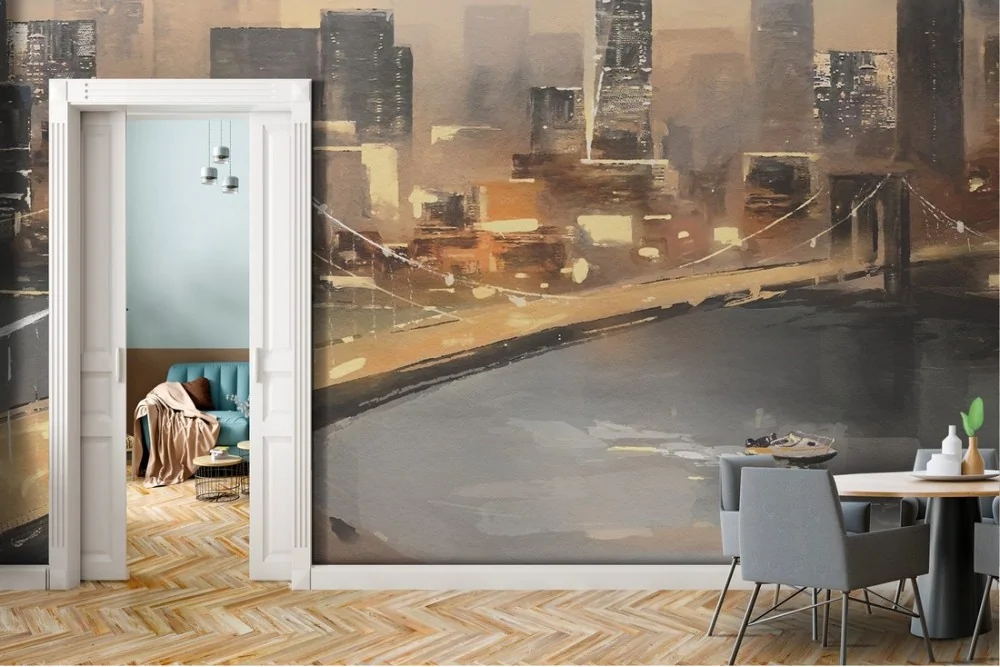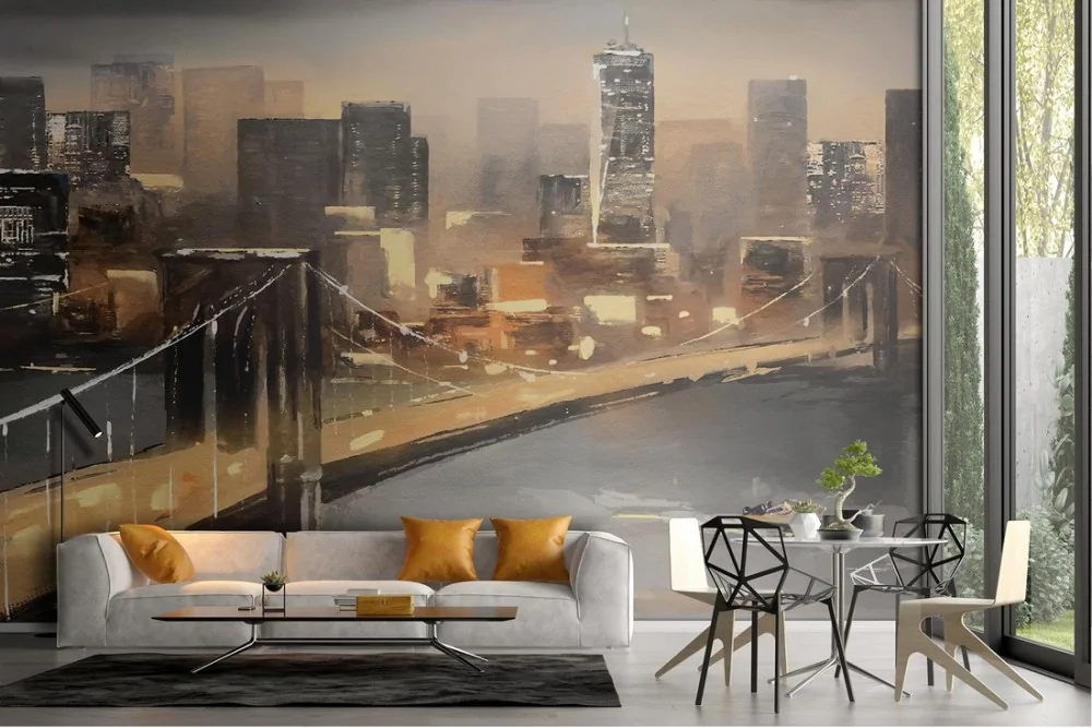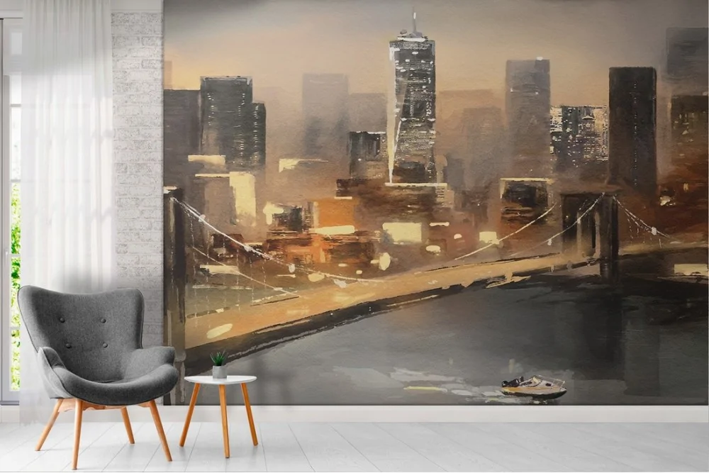 Carta da Parati città New York paesaggio ponte e grattacieli