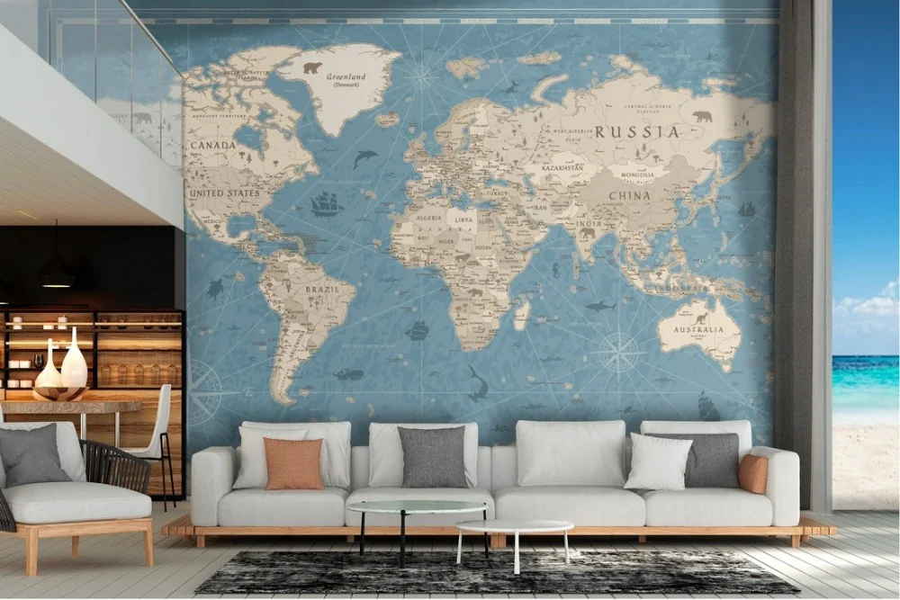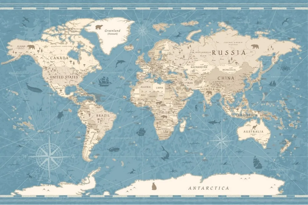 Carta da Parati mappa geografica dettagliata scritte e animali