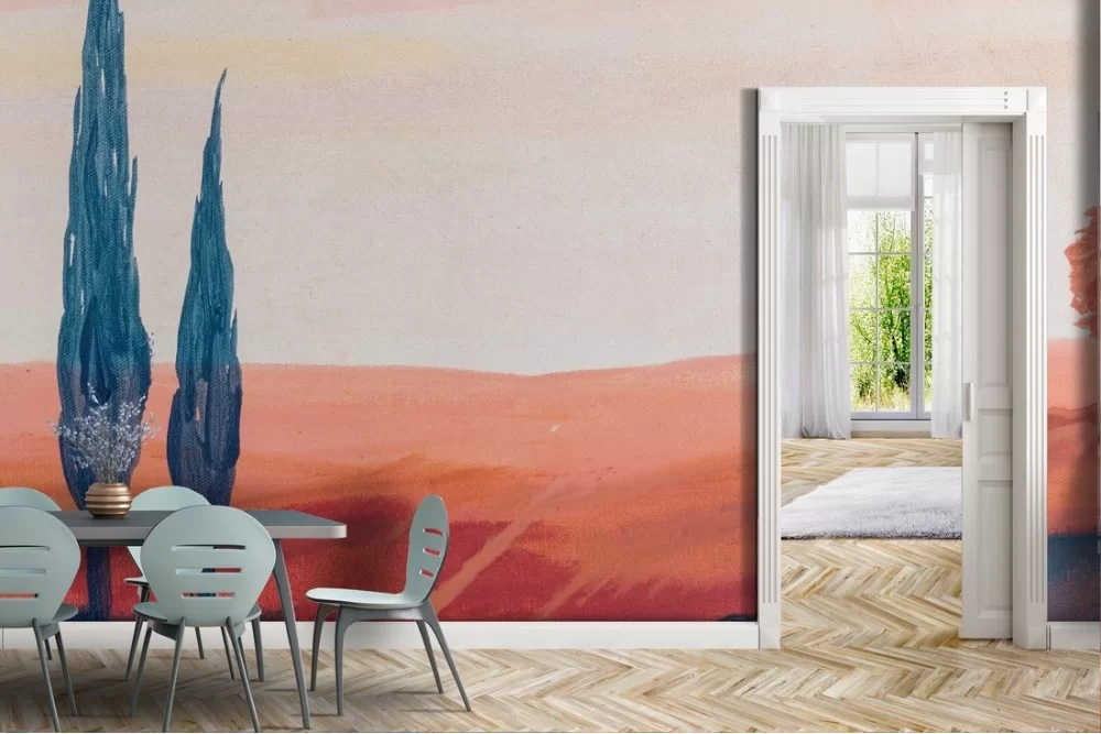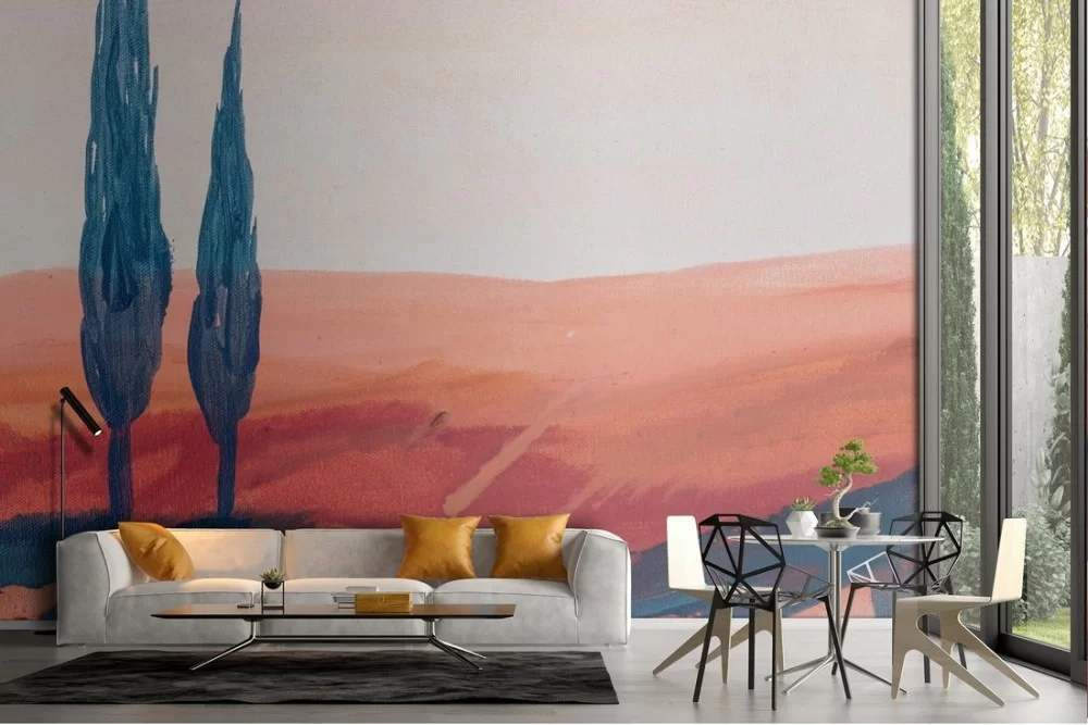 Carta da Parati dipinto paesaggio colline