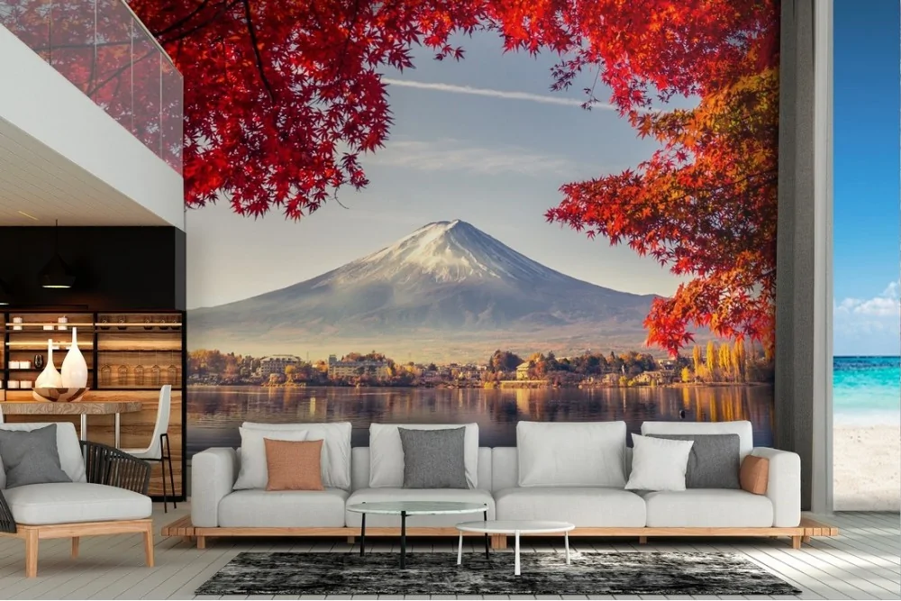 Carta da Parati montagna con lago paesaggio