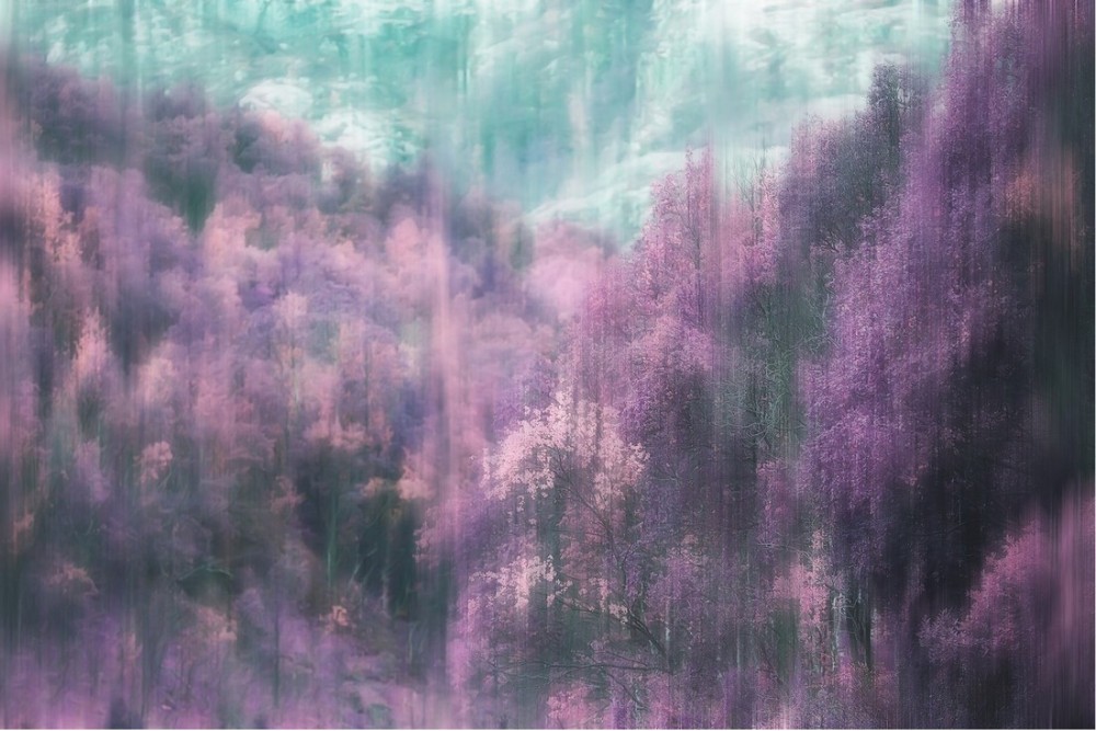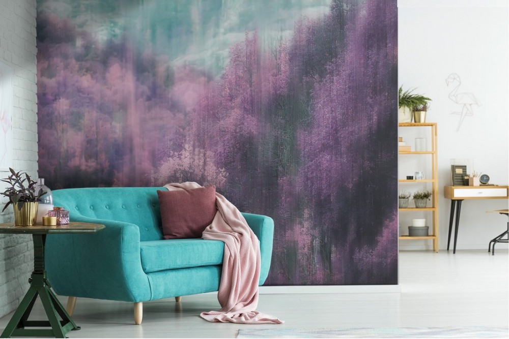 Carta da Parati foresta dipinto paesaggio rosa
