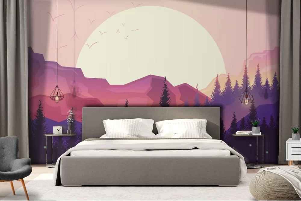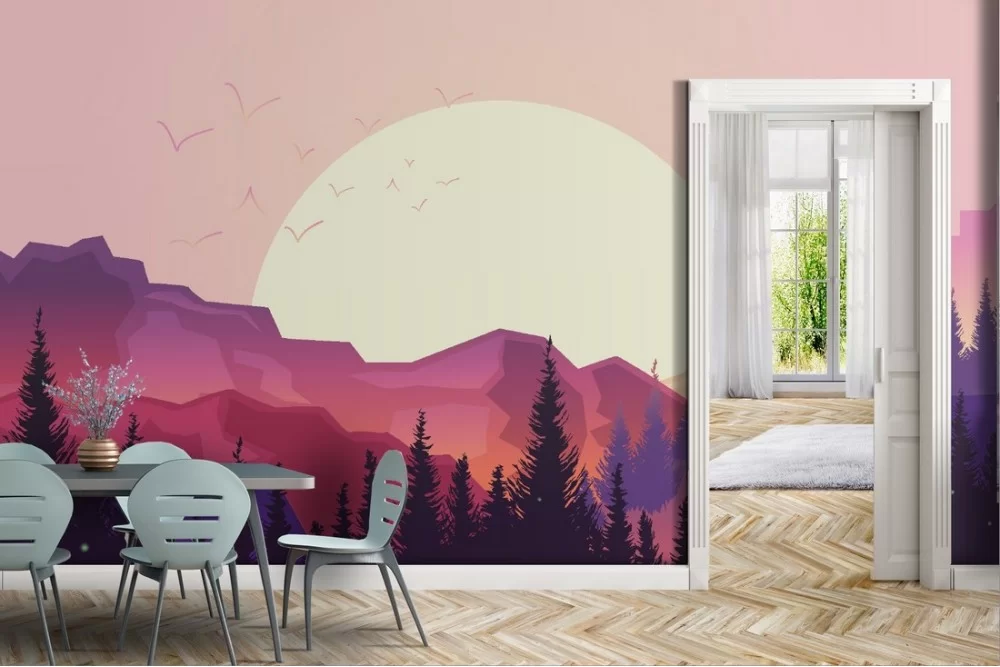 Carta da Parati illustrazione paesaggio montagne e alberi