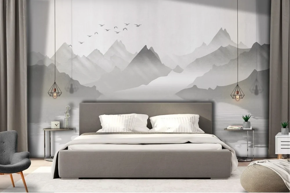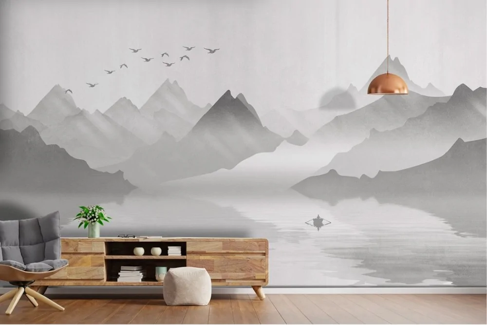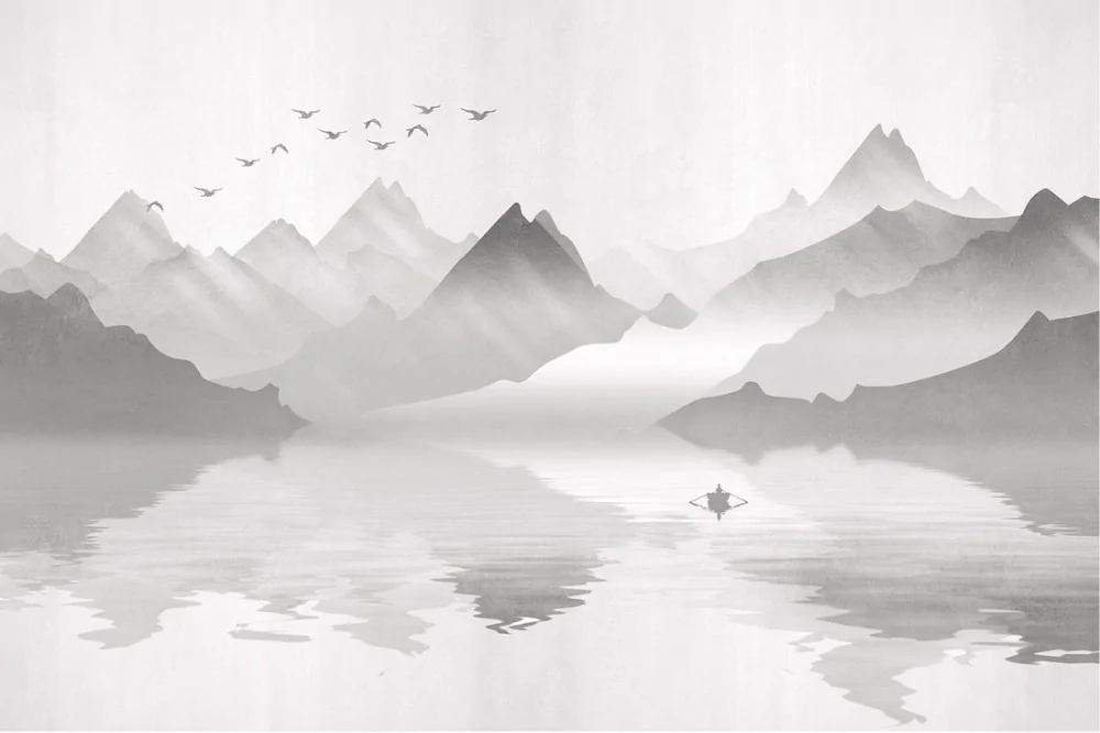 Carta da Parati montagna con lago illustrazione stilizzata