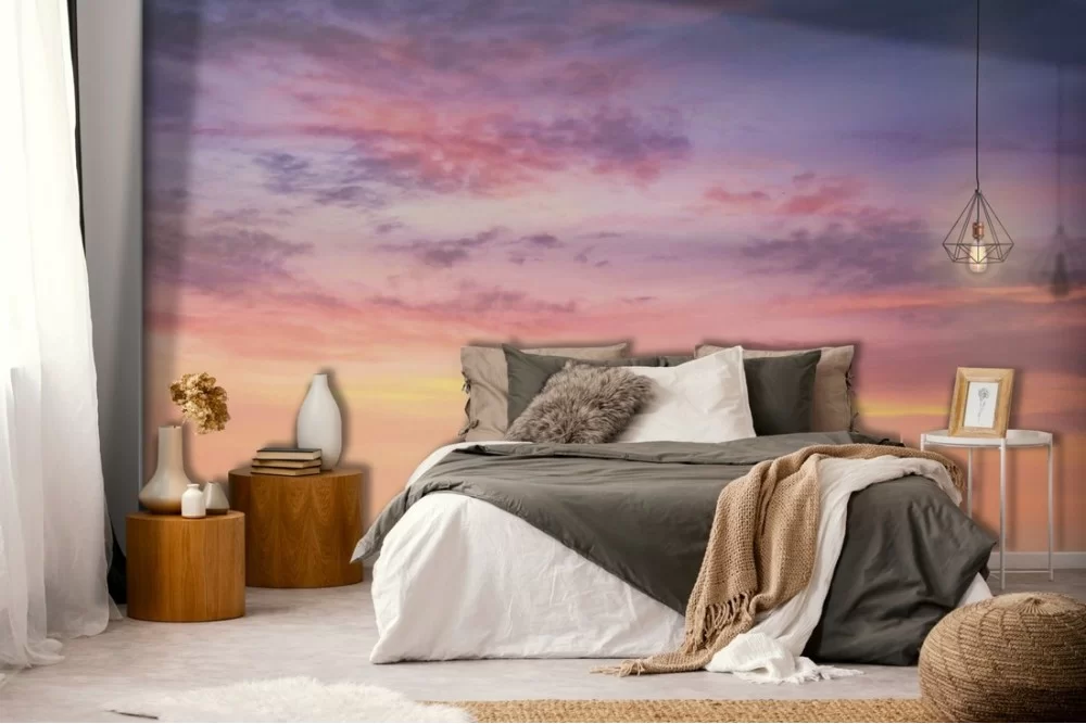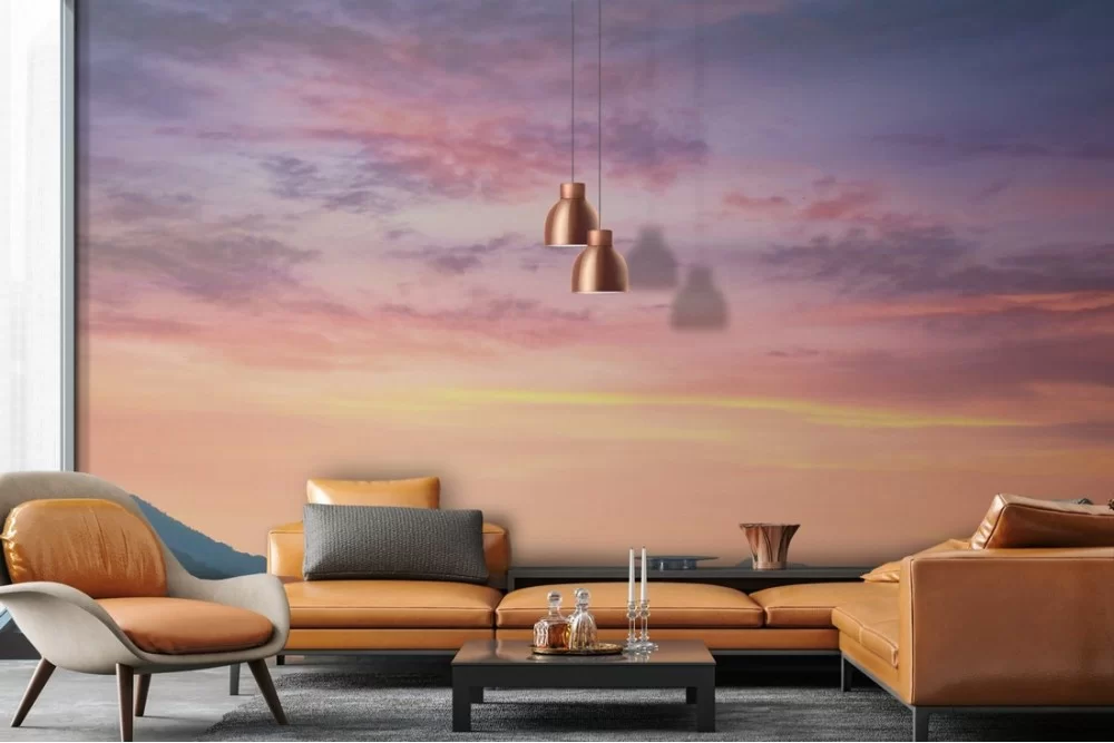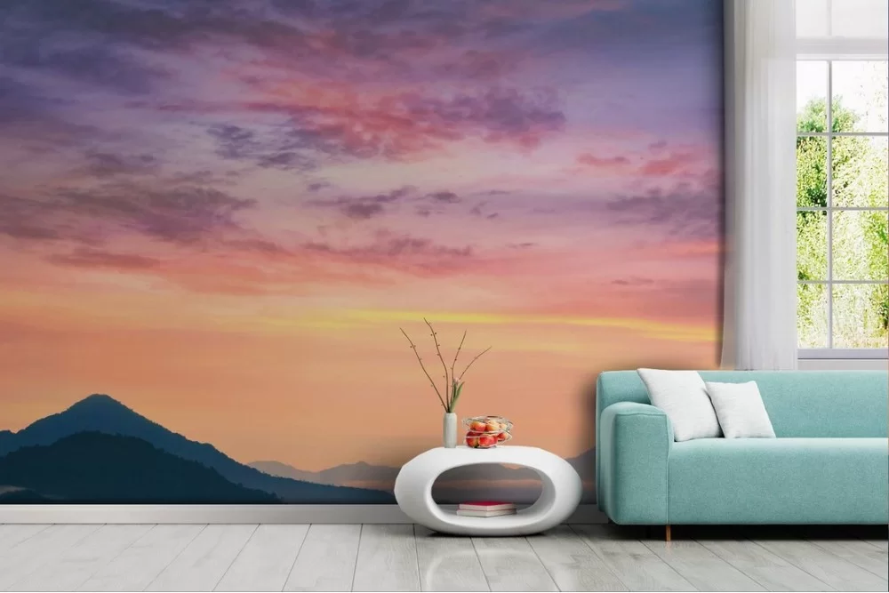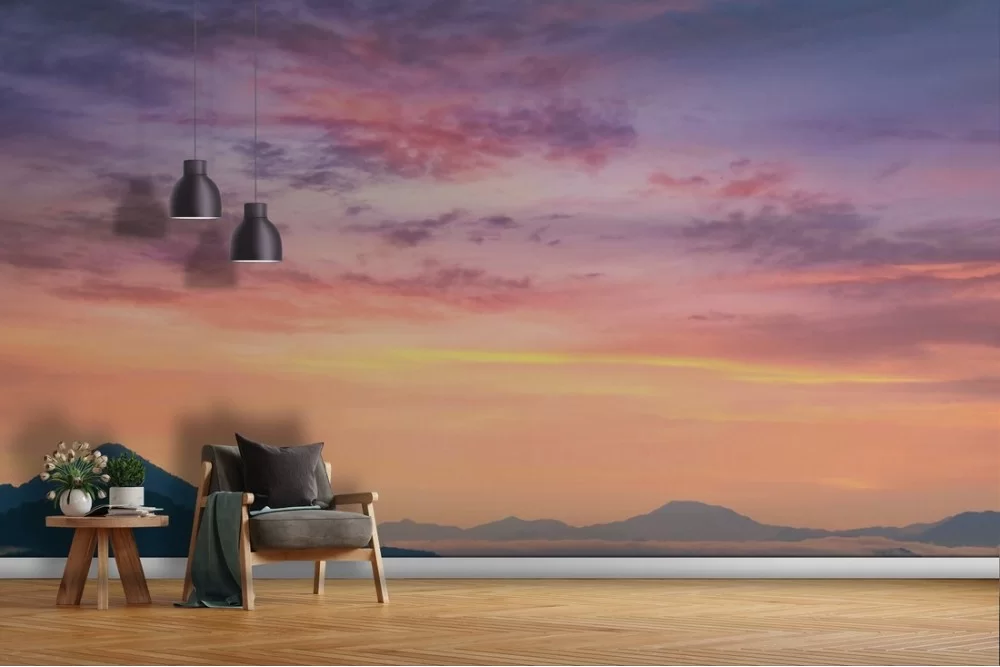 Carta da Parati tramonto rosa montagne paesaggio-0272
