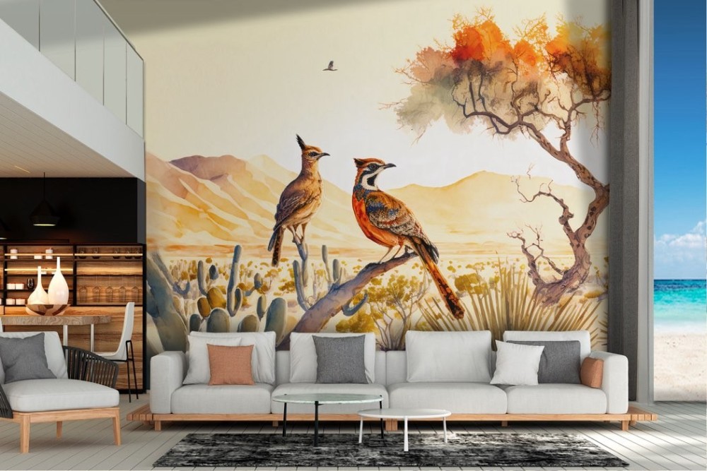 Carta da Parati Paesaggio Acquerello con Uccelli -a130