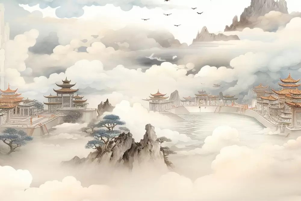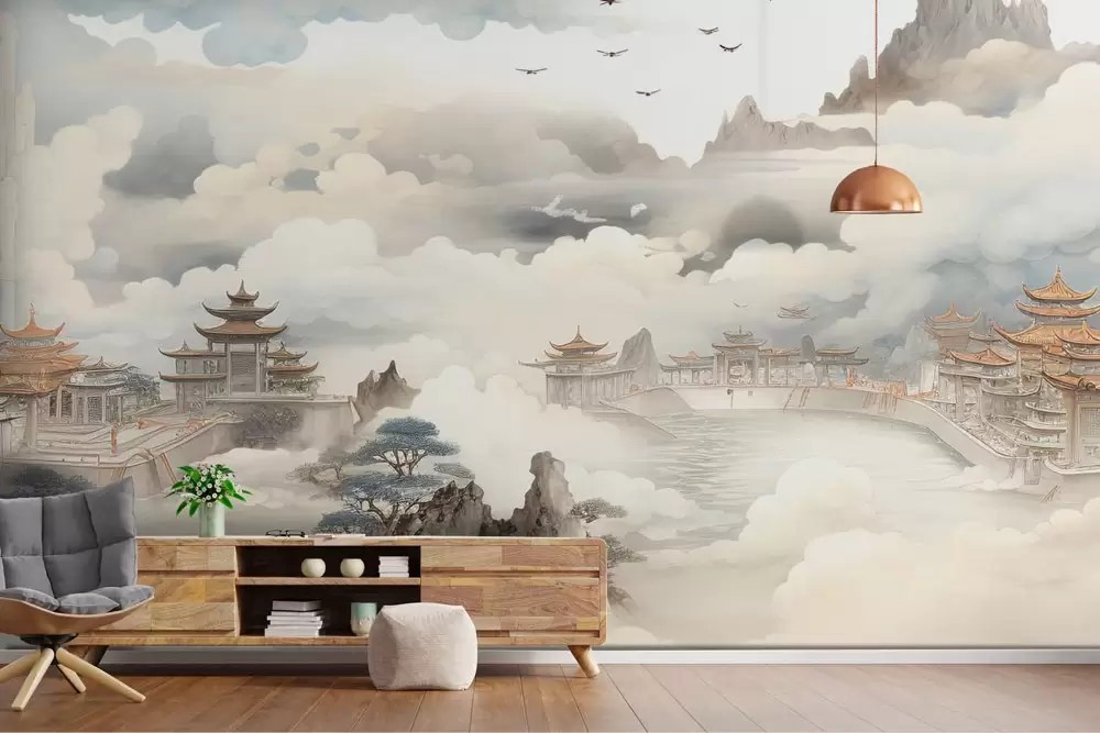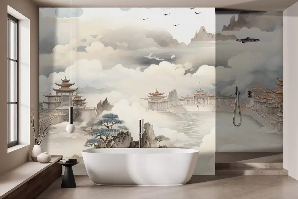 Carta da parati paesaggio orientale acquerello