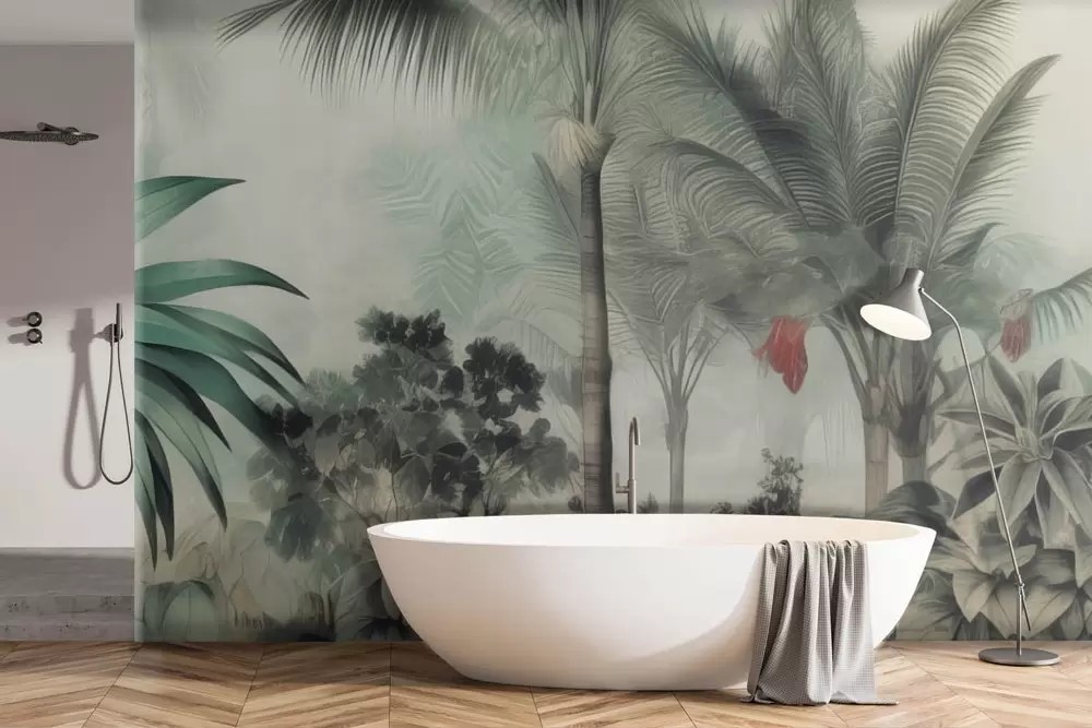 Trasforma la parete del tuo bagno con carta parati dal tocco esotico