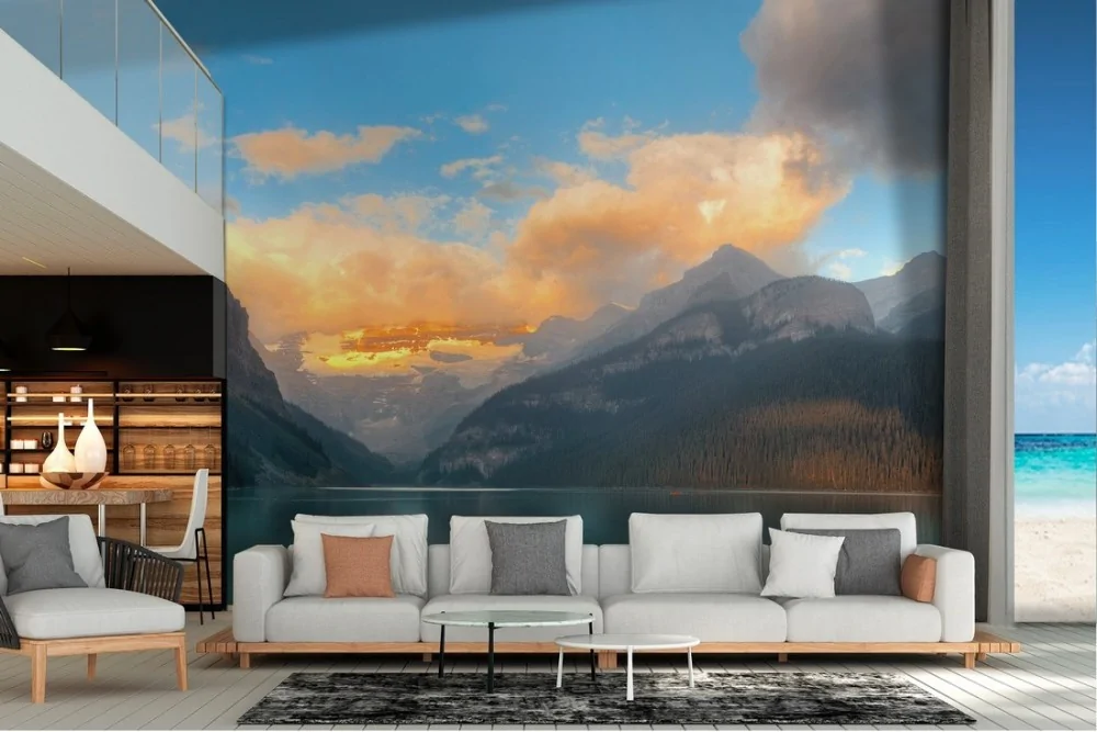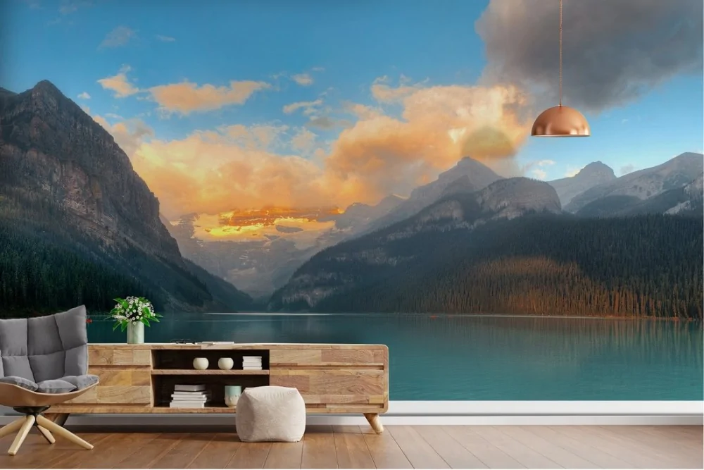 Carta da Parati paesaggio lago tra montagne natura foresta