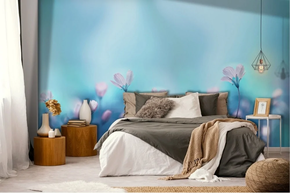Carta da Parati prato fiori rosa natura astratta