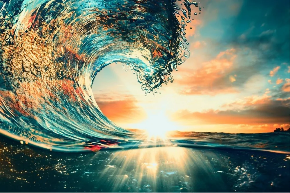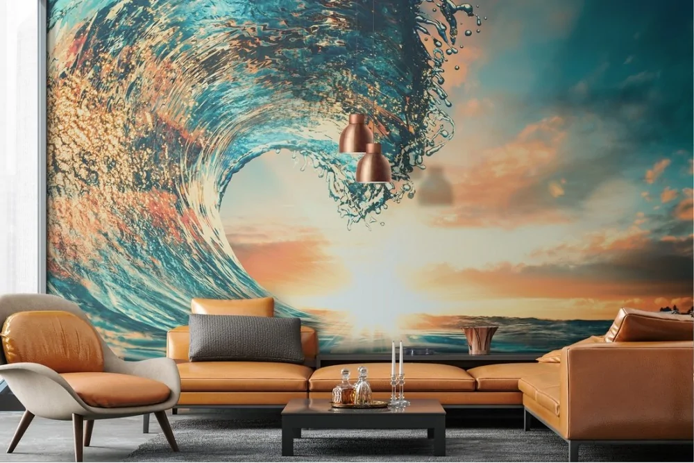 Carta da Parati onda mare al tramonto alba