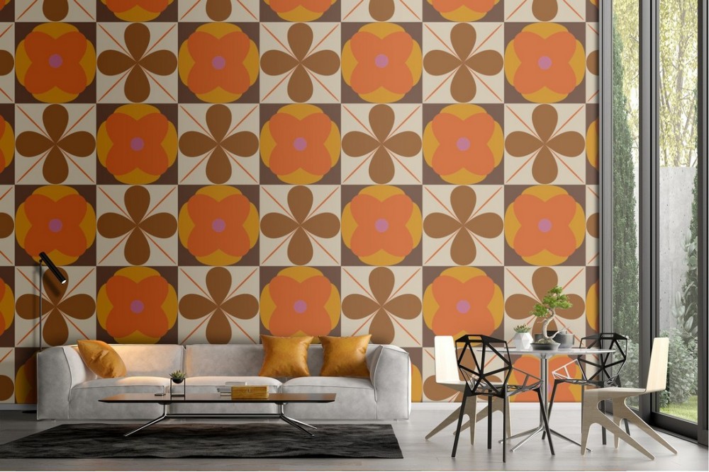 Carta da Parati decorazione geometrica vintage mattonelle.