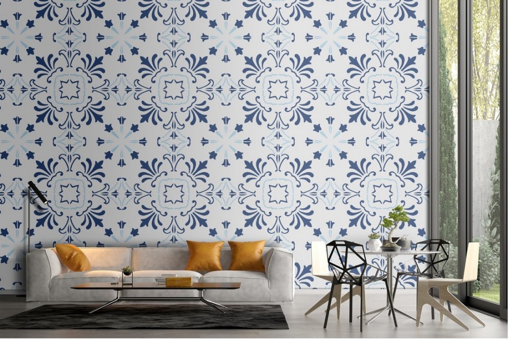 Carta da Parati decorazione mattonelle vintage geometriche.