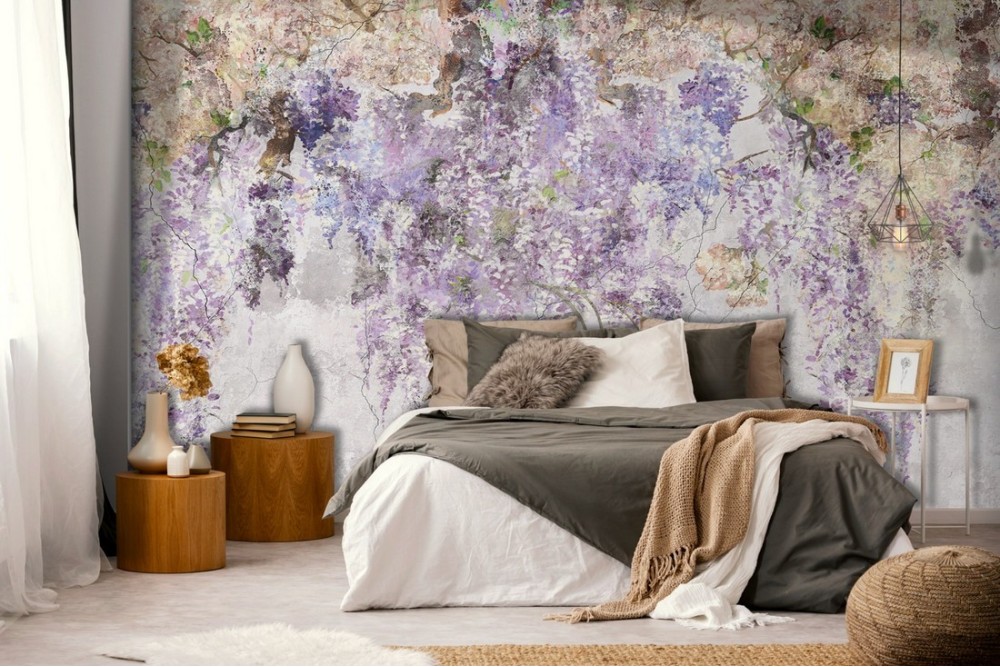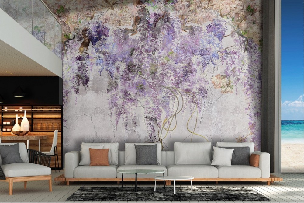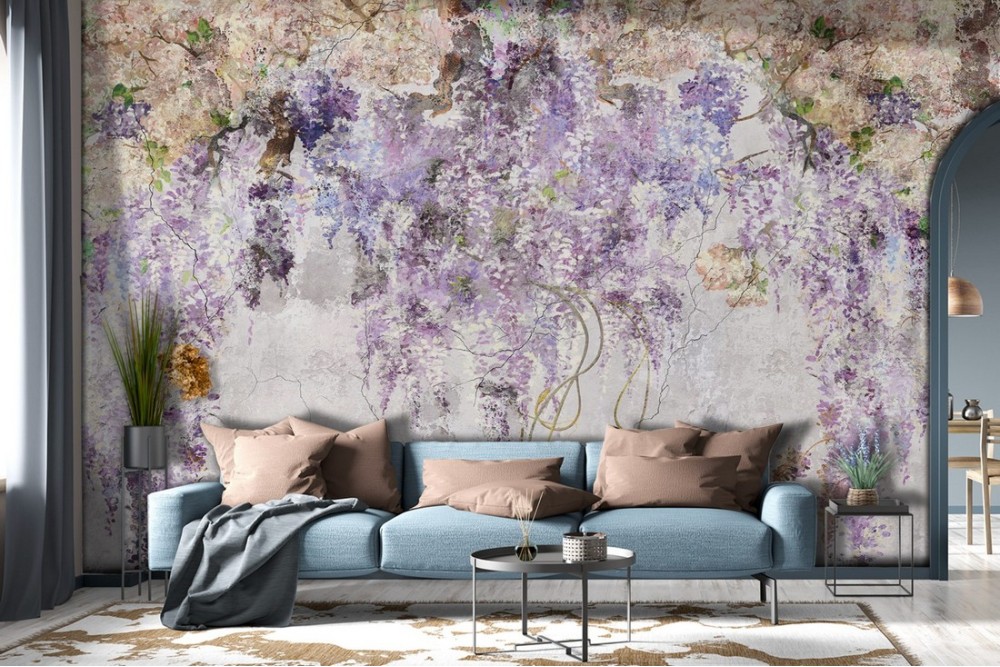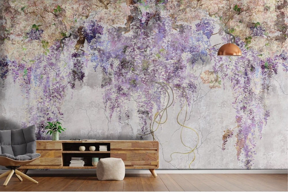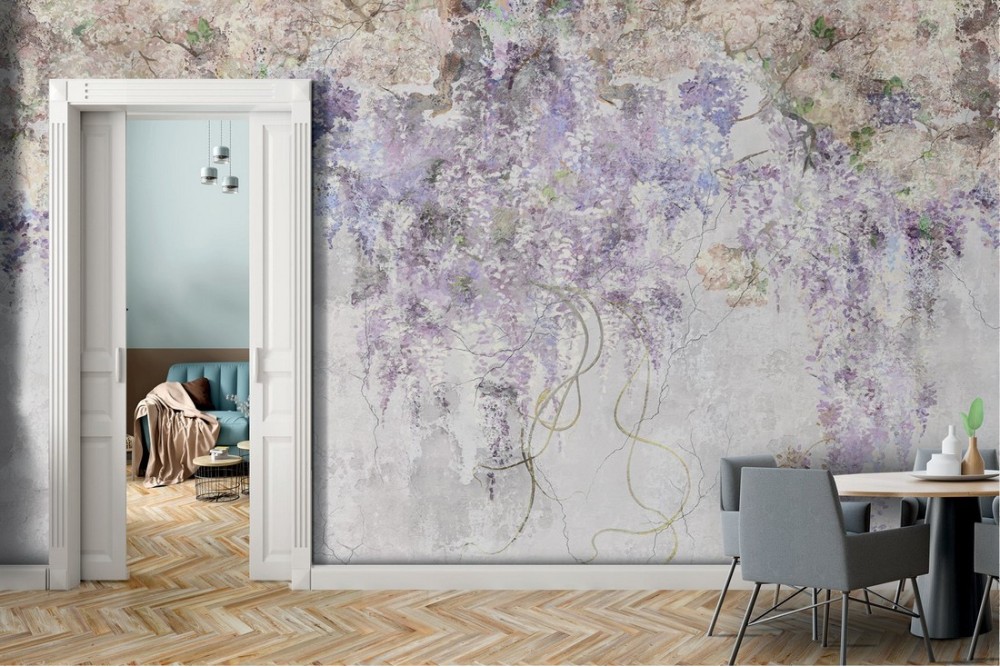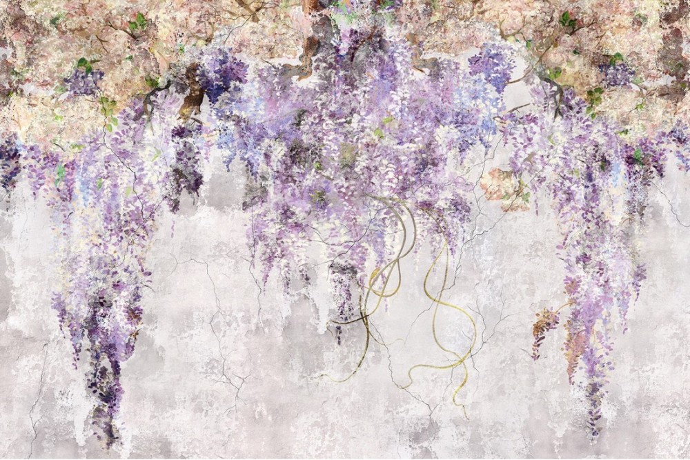 Carta da Parati Design e Stili Flora e Fauna Superfici e Texture Cemento Fiori Natura Vintage
