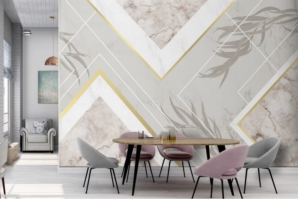 Carta da Parati Foglie Marmo Moderna Natura