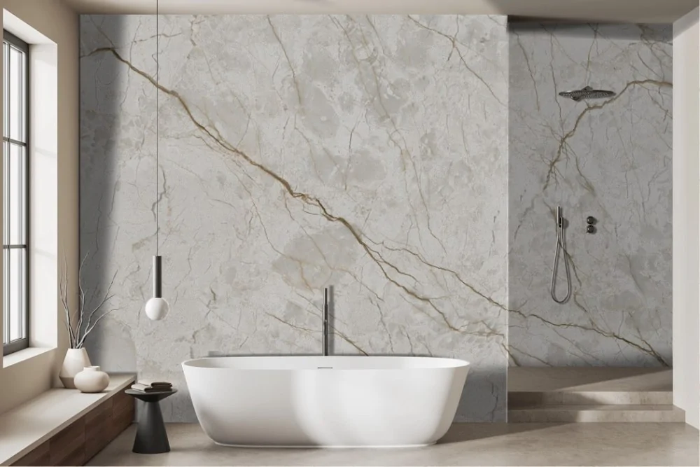Carta da Parati Adesiva Effetto Marmo con Venature Ocra