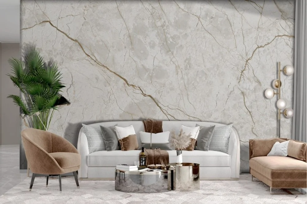 Carta da Parati Effetto Marmo con Venature Ocra -a55