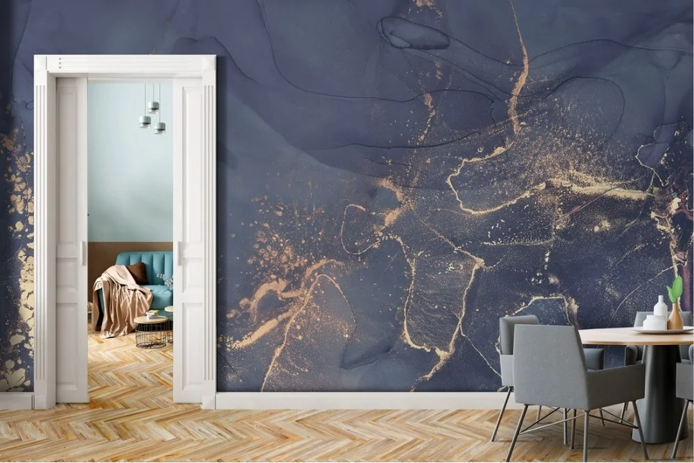 Carta da Parati superficie marmo blu luxury